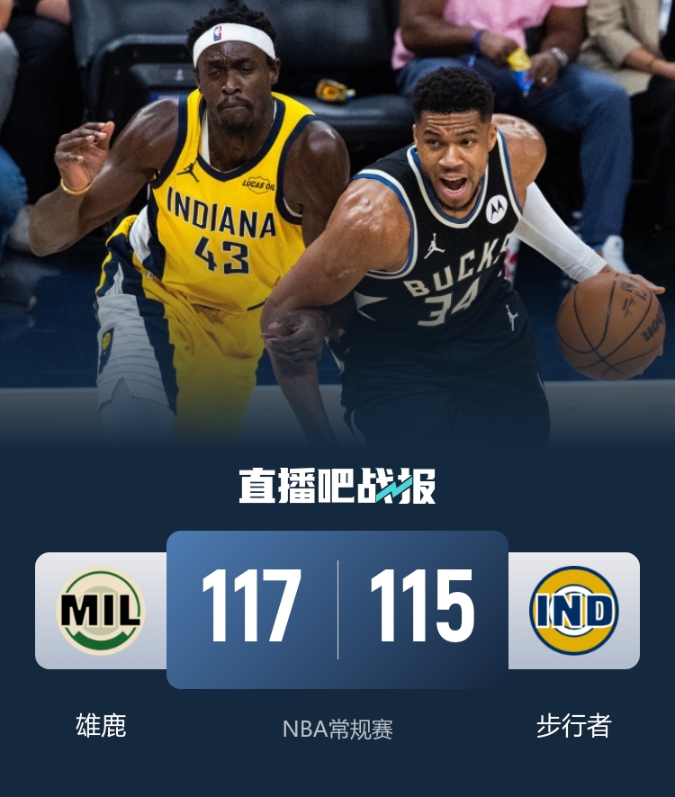 字母哥压哨绝杀&33+13+5 雄鹿险胜步行者 西亚卡姆32+5+8